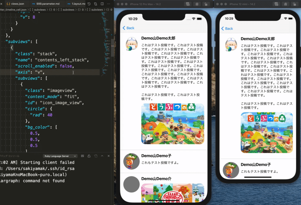 UIKitHotReloadはjson/ymlファイルでiOSアプリのレイアウトを組むライブラリです。